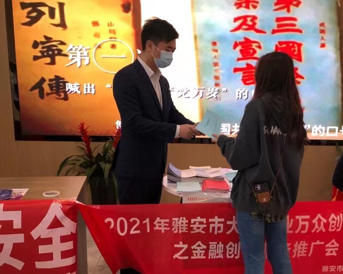 2021年10月15日至19日,雅安開展2021年大眾創(chuàng)業(yè)萬眾創(chuàng)新活動(dòng)周活動(dòng),主題是“高質(zhì)量創(chuàng)新創(chuàng)造、高水平創(chuàng)業(yè)就業(yè)”。期間,市擔(dān)保公司充分發(fā)揮融資擔(dān)保作用,為廣大創(chuàng)業(yè)者提供個(gè)性化的服務(wù),積極營造大眾創(chuàng)業(yè)萬眾創(chuàng)新的良好氛圍。