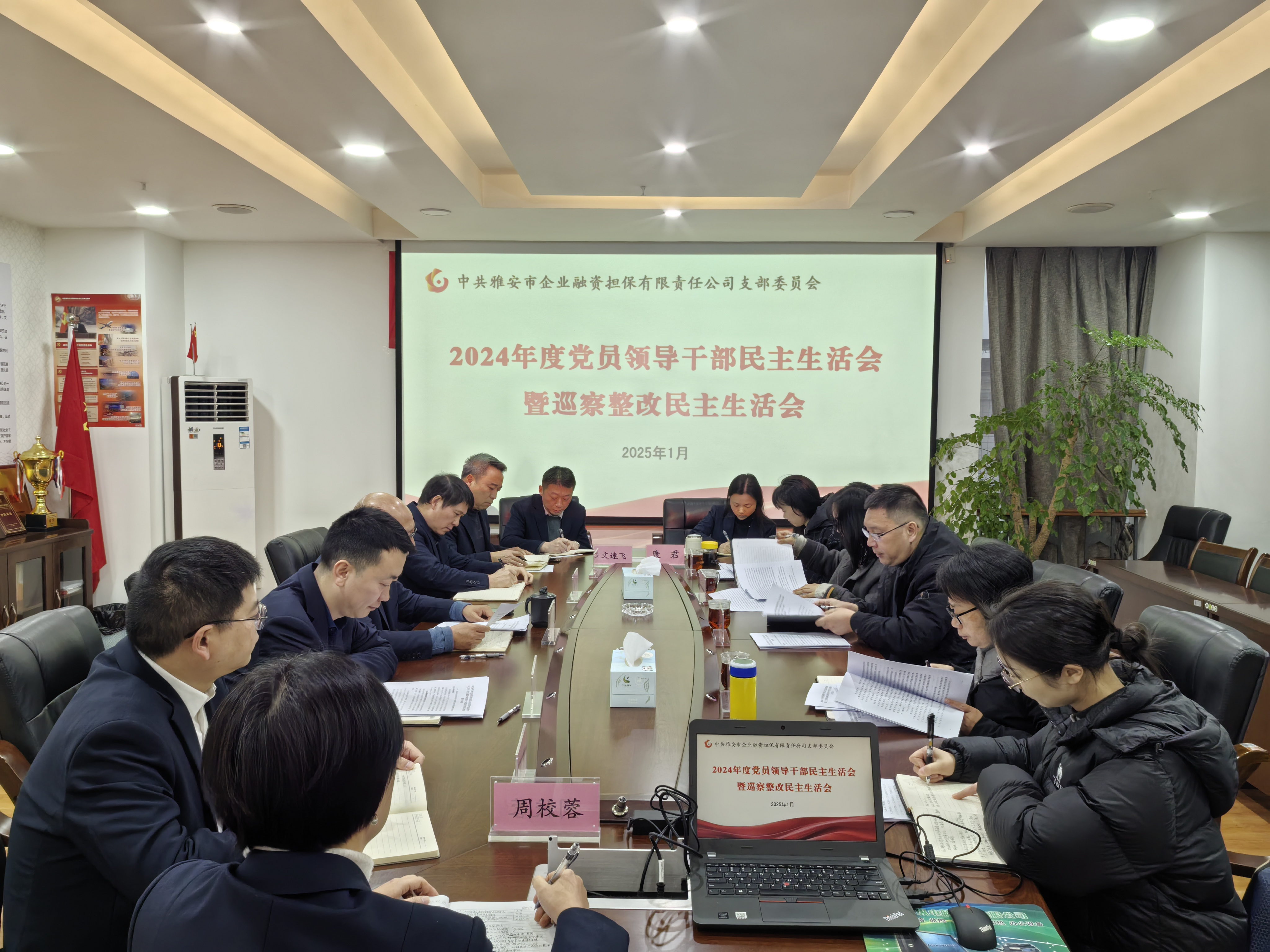 1月24日,市擔(dān)保公司黨支部召開2024年度黨員領(lǐng)導(dǎo)干部民主生活會暨巡察整改民主生活會。市財政局黨組成員、副局長張小春、駐市財政局紀(jì)檢監(jiān)察組組長、市財政局黨組成員曾文碧以及市紀(jì)委監(jiān)委機(jī)關(guān)、市財政局相關(guān)同志到會指導(dǎo)并點評。會議由市擔(dān)保公司黨支部書記、董事長尹福健主持。