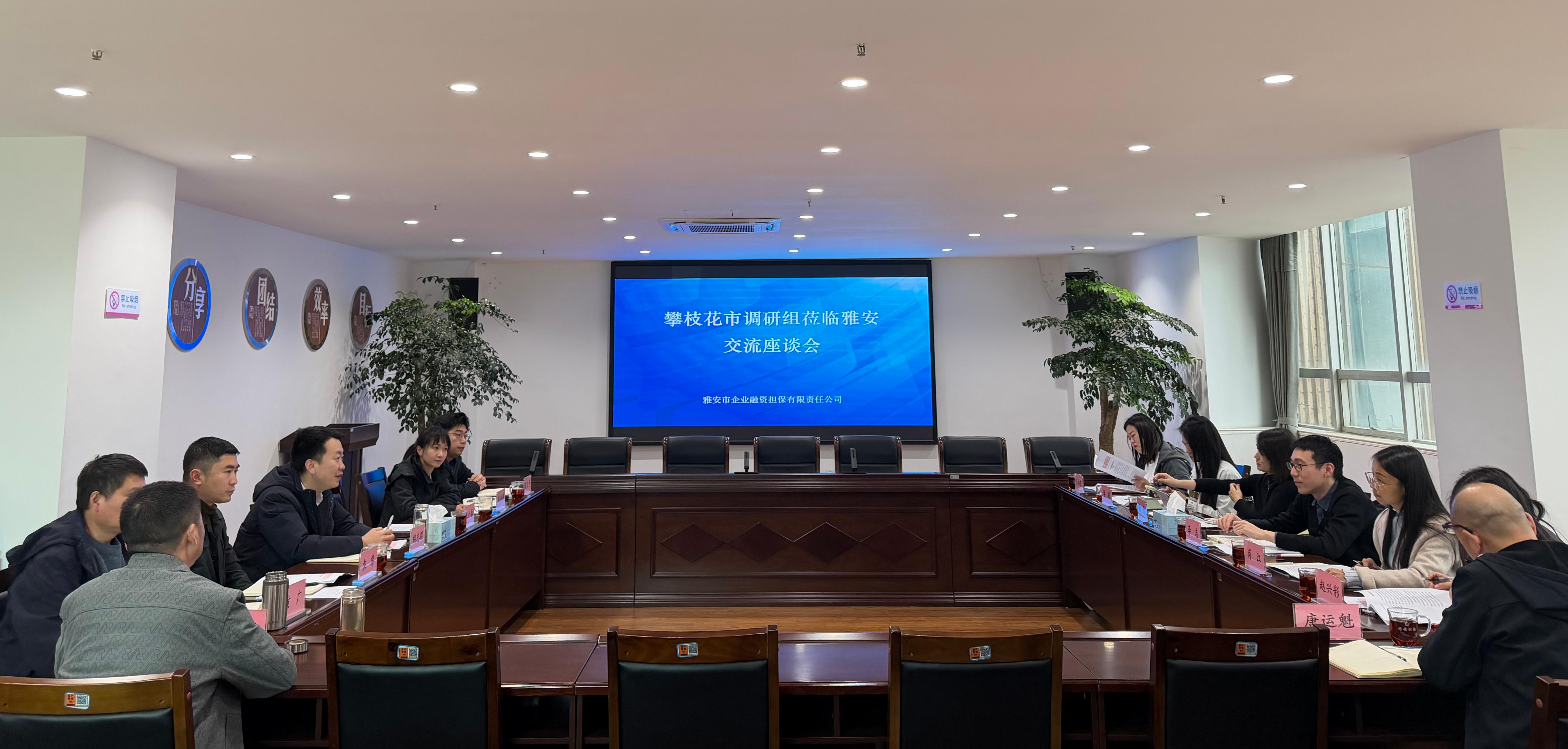 3月16日,攀枝花市財政局副局長李志帶隊,攀枝花發(fā)展(控股)集團、攀枝花市創(chuàng)業(yè)貸款融擔公司一行來到雅安,就政府性融資擔保公司內(nèi)部治理與制度建設、業(yè)務開展、體系建設及風險控制等方面開展調(diào)研。雅安市財政局金融資本科科長劉冉婷參加座談會。