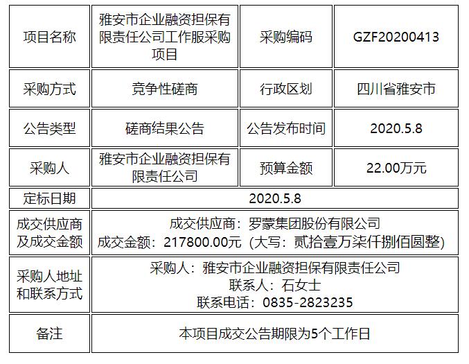 工作服采購項(xiàng)目競(jìng)爭(zhēng)性磋商結(jié)果公告